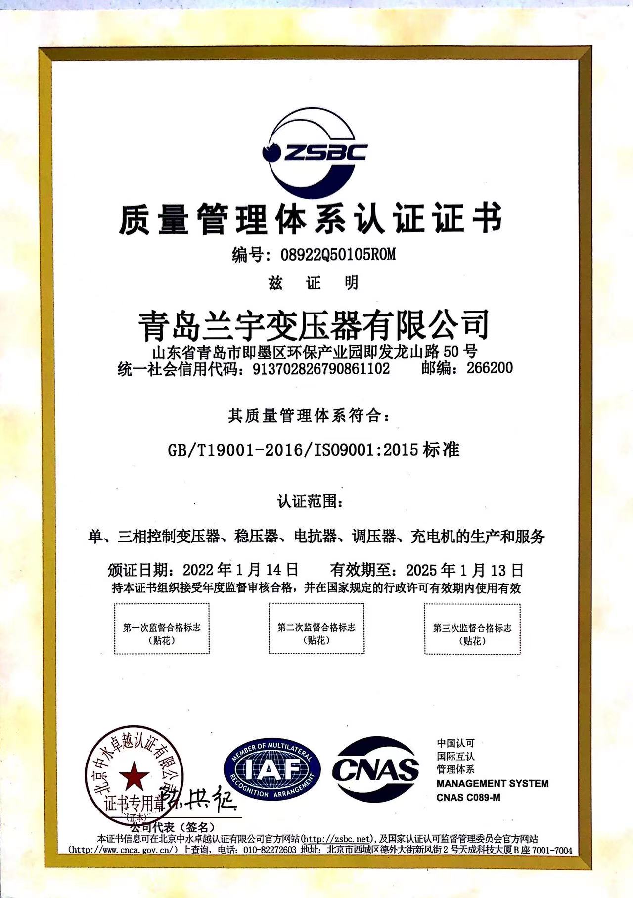 公司在注重产品开发,研制的同时,不断加强质量管理,并全面通过了CE认证、CQC认证及ISO9001国际质量体系认证。